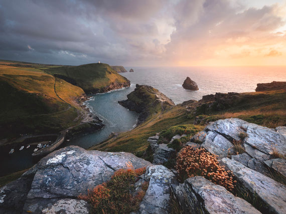 A beautiful summer sunset over Boscastle Harbour captured from the cliff tops of Penally Hill.
