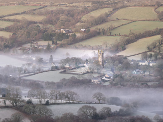 A touch of mist drifts through the village of Widecombe-in-the-moor.